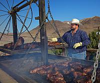 And my mouth waters at the sight of what he's grilling.