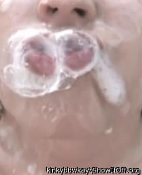 Wonderful sweetie blow sperm bubbles